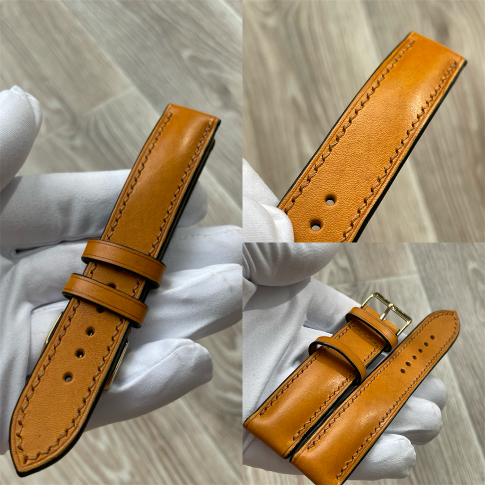 Ремешок прошит итальянскими нитями в цвет кожи, края и обратная сторона черного цвета. Ремешок имеет подиум, который придает объемный вид и необычность изделию.